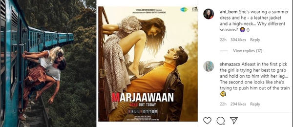 Put side by side, the Marjaawaan song poster certain seems copied. In the comments, people also noticed that while the woman is wearing a summer frock the man is dressed in a leather jacket. Also, why does it seem as though Vaani Kapoor’s character is trying to push Akshay Kumar’s character off the train? One commentator also expressed the view that this is now the sort of thing people will try to do in their pre-wedding photoshoots – which is probably true.
