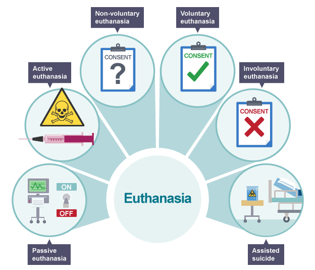 Often referred to as mercy killing, this is the practice of making a choice about ending life intentionally to relieve pain and suffering. In the UK it means “deliberate intervention” to end a life to “relieve intractable suffering”. In some European countries this is understood as the “termination of life by a doctor at the request of a patient”.